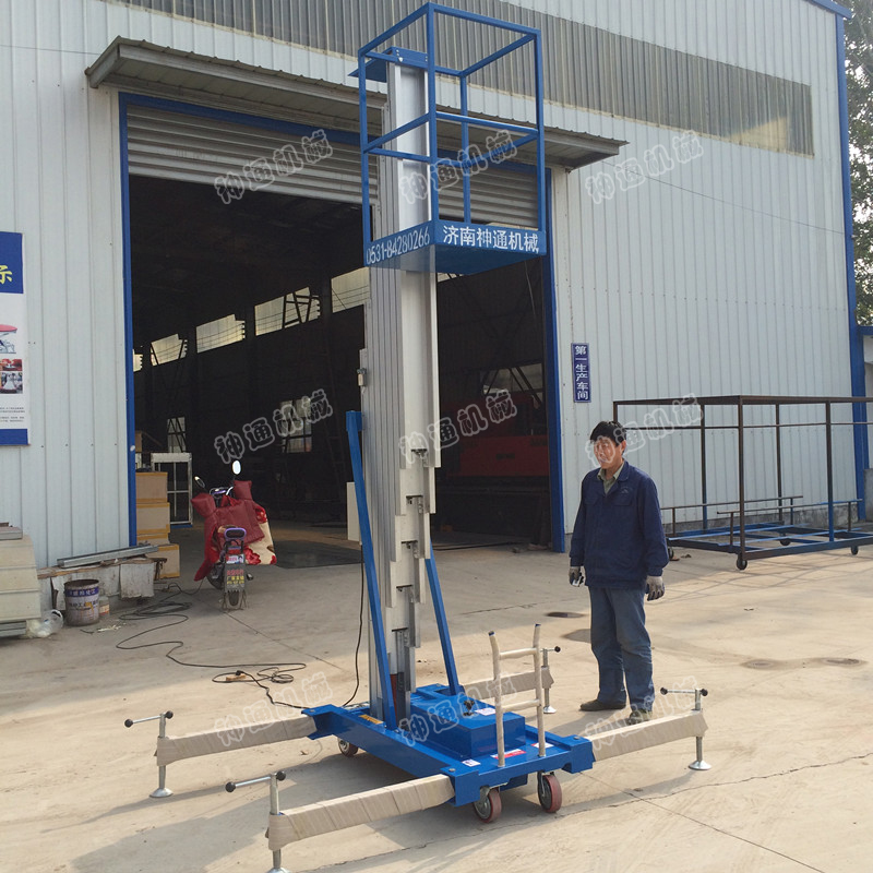 產(chǎn)品介紹:鋁合金式液壓升降平臺(tái)采用高強(qiáng)度優(yōu)質(zhì)鋁合金材料,具有造型美觀、體積小、重量輕、運(yùn)轉(zhuǎn)靈活,推行方便。升降平穩(wěn)、安全可靠等優(yōu)點(diǎn)。雙柱鋁合金式升降機(jī)能穿越一般門(mén)廳,可隨意進(jìn)出電梯,能在極小的空間內(nèi)發(fā)揮最高的舉升能力。使雙人高空作業(yè)變得輕而易舉。且耗電少、無(wú)污染、工作時(shí)不傷地面,可用于貼墻作業(yè)及探出作業(yè)。鋁合金升降平臺(tái)分為單柱、雙柱、三柱和四柱等。